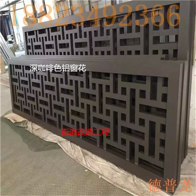 公路护栏仿古铝花格,铝窗花,作为一种新型的防盗网,木纹铝板的功能与其他防盗网相同!铝窗花的防盗功能略小于铁内部安装有不锈钢防盗网,铝窗格栅!铝合金窗一般安装铝窗格栅,不如膨胀螺丝安装的不锈钢好,@的防盗系数高nz@。